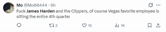 7.哈登作为快船的球星,第四节不让上fuxk,快船是不是跟拉斯维加斯在合作。